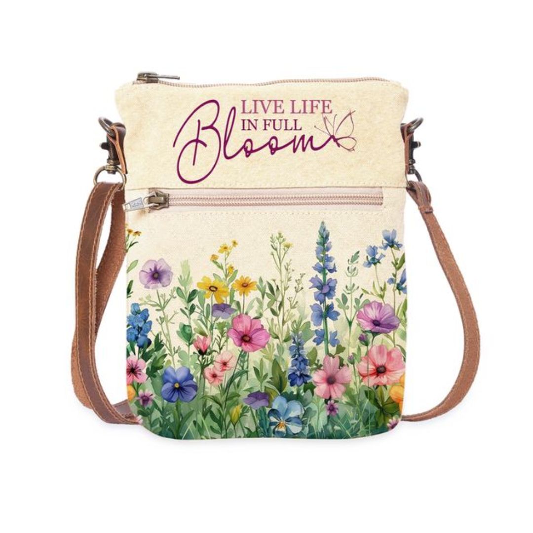 Elevate your everyday look with the Bloom Life Slim Sling, a charming blend of nature-inspired artistry and minimalist design. Crafted from durable canvas and accented with genuine leather straps, this compact sling is perfect for those who travel light but love to make a statement.