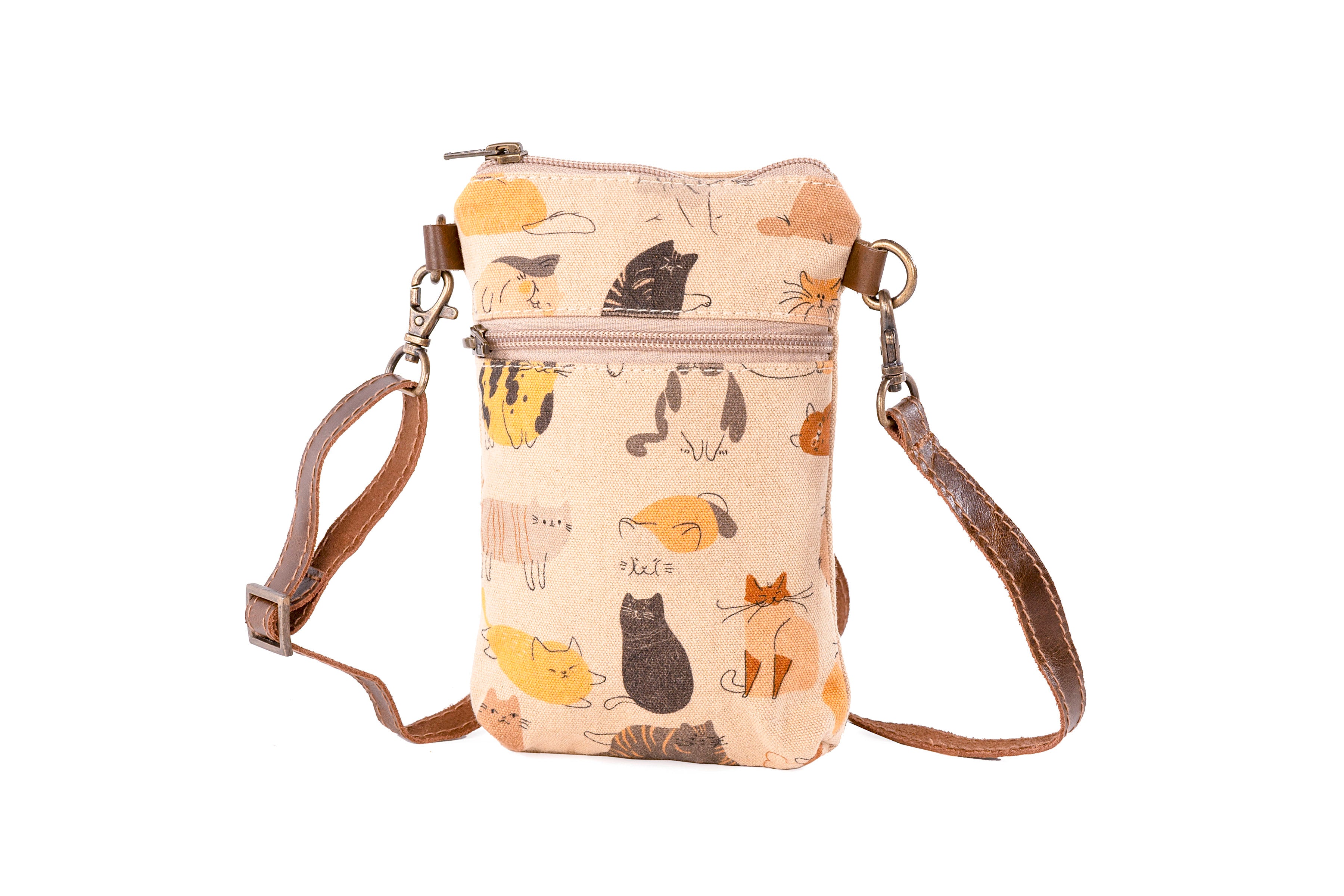 The Canvas and Leather Cats Cellphone Sling Bag is the perfect blend of functionality and style. Designed with a playful yet sophisticated aesthetic, this bag features a durable canvas body complemented by rich leather accents, ensuring both strength and elegance. Its compact size is ideal for carrying your phone, cards, and small essentials, making it the perfect accessory for on-the-go. The adjustable strap provides comfort, allowing you to wear it crossbody or on the shoulder.