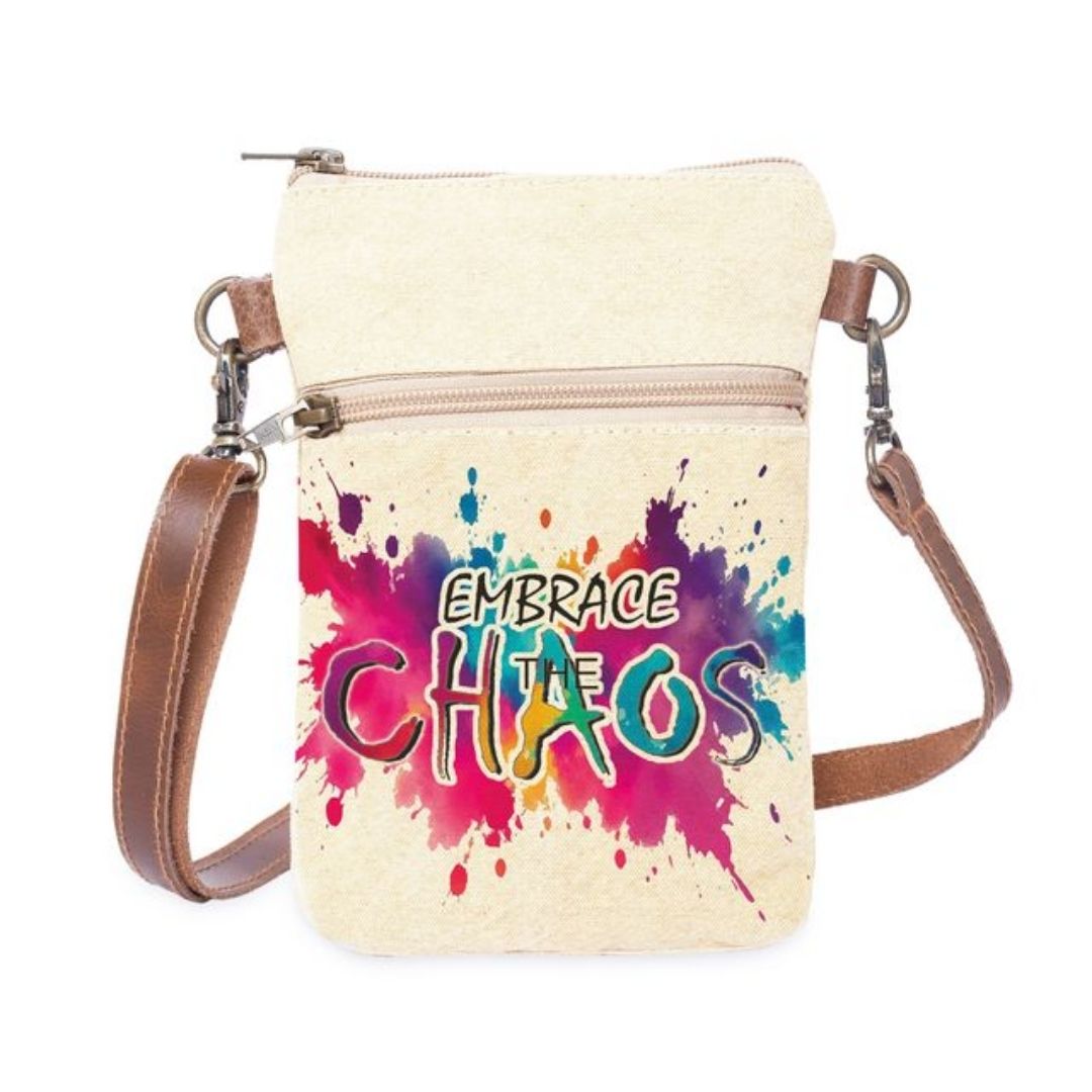 Boldly step into your day with the Chaos Cellphone Sling, a statement piece designed for the fearless and free-spirited. Crafted from durable canvas and accented with genuine leather straps, this compact yet impactful sling keeps your essentials secure while turning heads.