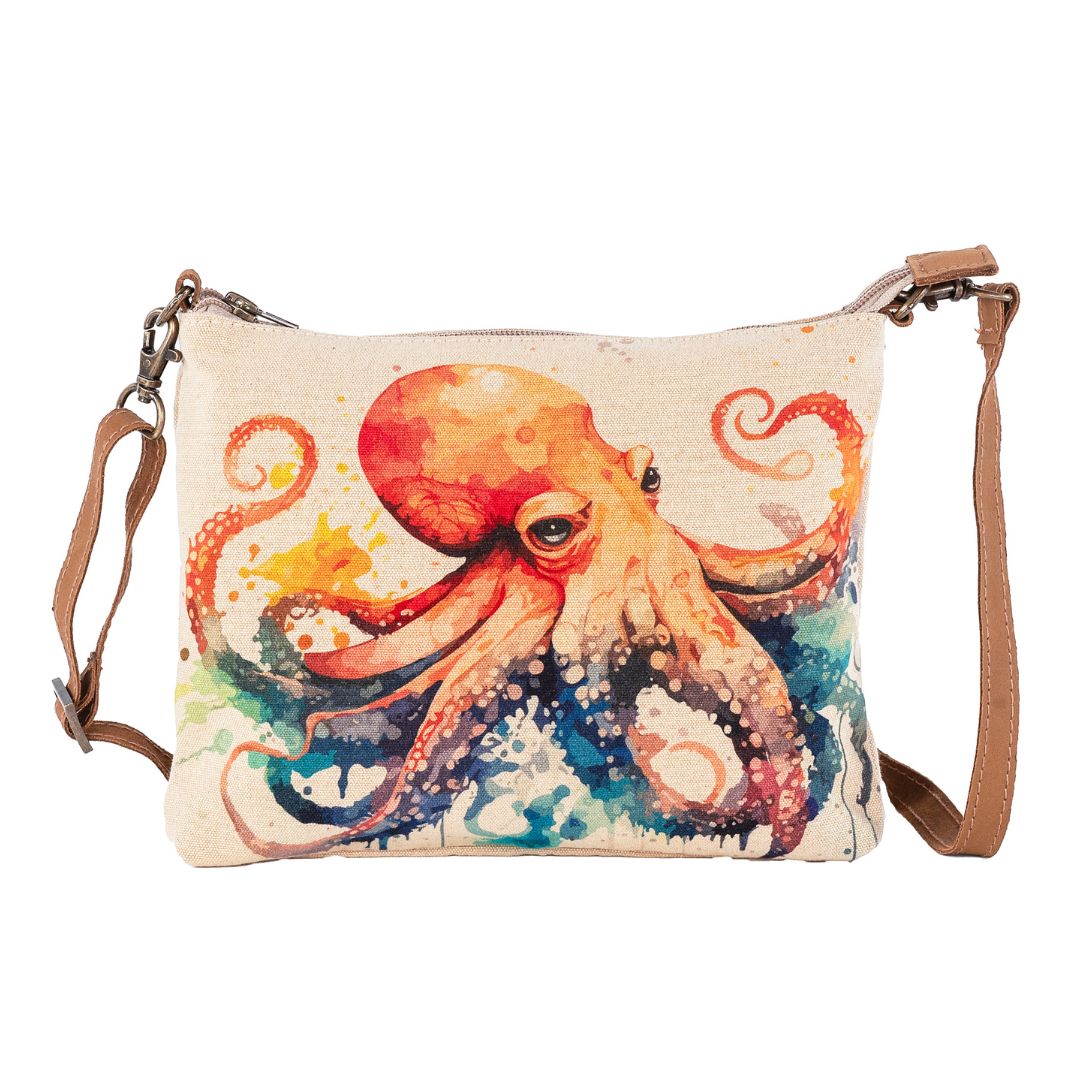 The Giant Octopus Sling Bag is a bold and functional statement piece, crafted from durable canvas and rich leather accents. Designed for everyday adventures, this sling bag features a compact yet spacious design, allowing you to carry essentials with ease. The high-quality canvas provides a rugged yet stylish look, while the leather detailing adds a touch of sophistication. With an adjustable strap for versatile wear and secure compartments to keep your belongings safe, this bag is perfect for those who appreciate practicality with an artistic edge. Inspired by the mystery and grace of the ocean’s most intelligent creature, the Giant Octopus Sling Bag is both eye-catching and reliable.