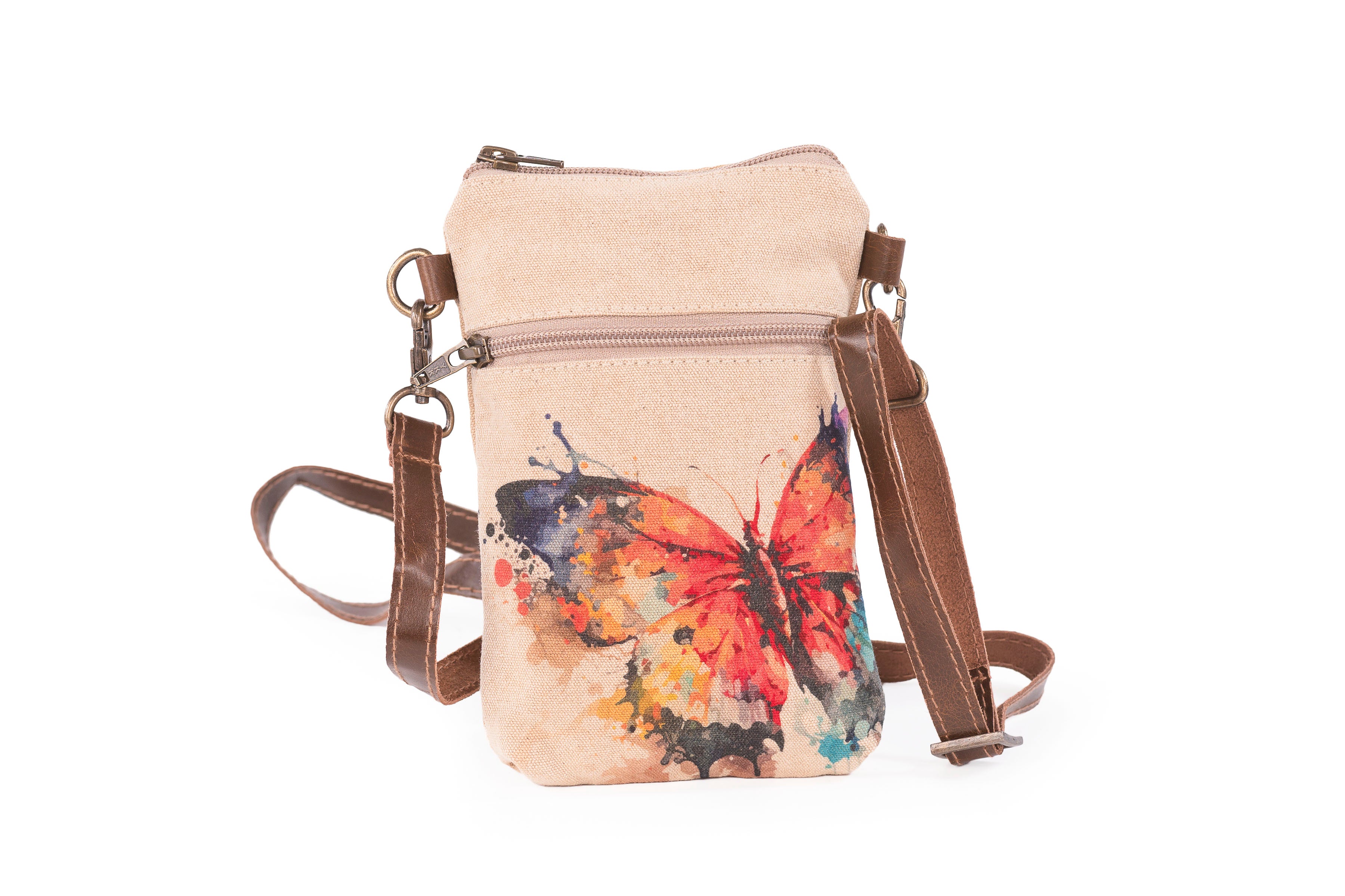 The Jazzy Butterfly Slim Sling is a perfect blend of elegance and functionality. Crafted with a premium canvas base and accentuated by rich leather details, this slim sling bag exudes a chic and contemporary vibe. The intricate butterfly design, with its vibrant colors and dynamic shapes, adds a playful touch while maintaining sophistication. Its compact size is ideal for carrying essentials in style, making it the perfect accessory for day-to-day outings or special occasions. With an adjustable strap for comfort and a sturdy construction, this sling bag is both a statement piece and a practical companion.