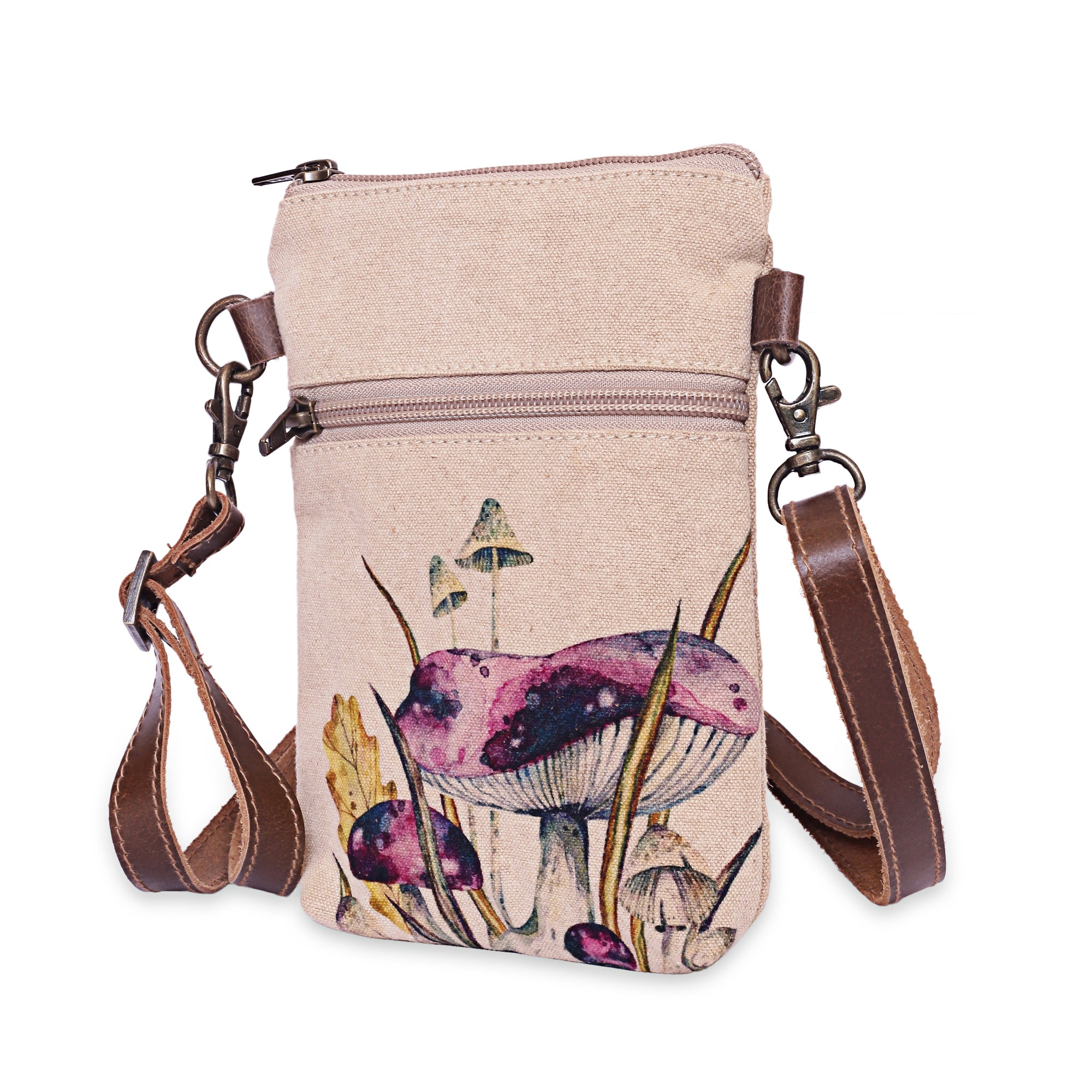 Step into nature’s whimsical beauty with the Mushrooms Cellphone Sling Bag. Crafted from durable canvas and accented with premium leather, this bag features a charming mushroom pattern that brings a touch of earthy, woodland magic to your everyday look. The compact size is perfect for carrying your phone, cards, and small essentials while keeping your hands free. With its adjustable strap and unique design, this sling bag is both practical and stylish for any casual outing or adventure.