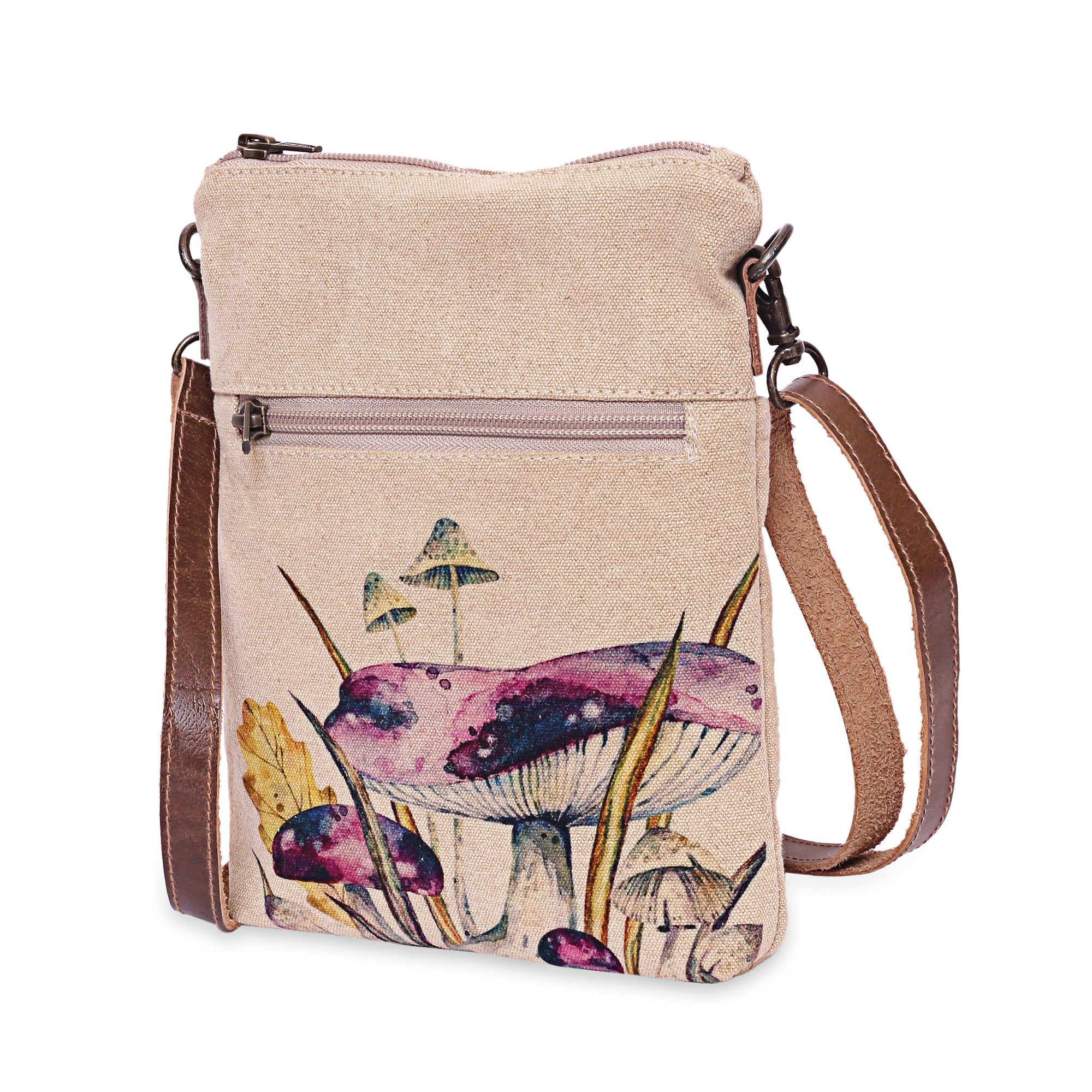 Embrace earthy elegance with the Mushrooms Slim Sling Bag. Crafted from durable canvas and accented with premium leather, this slim, modern sling bag features a whimsical mushroom design that brings a touch of nature's charm to your everyday look. With its sleek silhouette and compact size, it’s perfect for carrying just the essentials—phone, wallet, and keys—while staying organized and stylish.