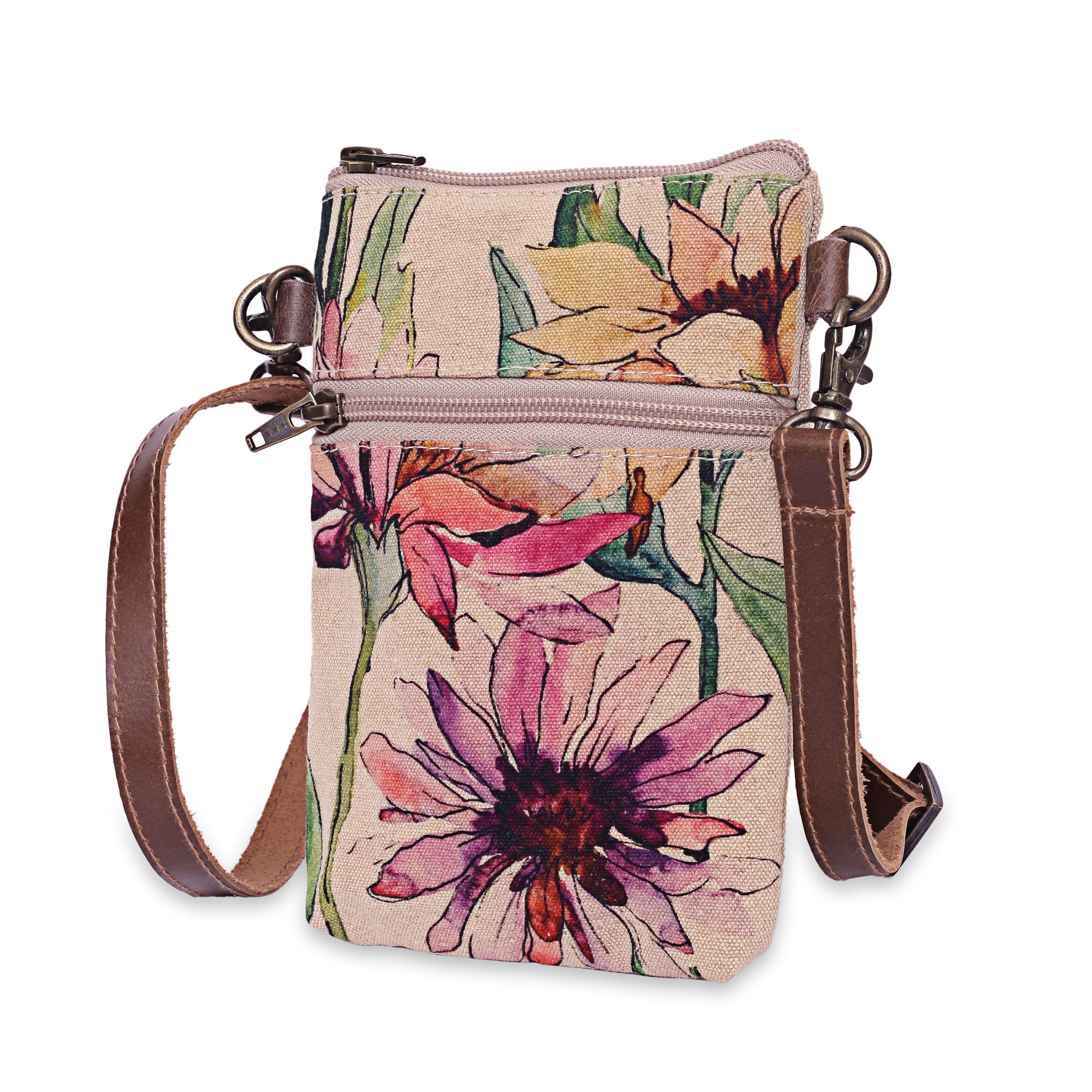Designed for the modern minimalist, the Wild Aster Cellphone Sling Bag blends practical functionality with a touch of nature-inspired elegance. Crafted from durable canvas and premium leather, this compact sling bag features a subtle wild aster floral pattern, adding a soft yet vibrant pop to your everyday look. Perfect for carrying your phone, cards, and small essentials, it offers hands-free convenience while keeping your belongings secure and easily accessible.